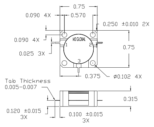 3475 - 3600 MHz 同轴环行器 - 标准线